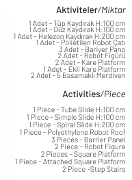 Kent mobilyaları, çocuk oyun grupları, dış mekan kondisyon aletleri, gazebo, pergole bank, çöp kovaları gibi kent mobilyaları ile darbe emici dekoratif zemin kaplamaları başta olmak üzere şehirciliğe ait proje ve tasarımdan başlayıp ürüne dönen süreçlerin tamamını 20 yıldır kendi bünyeside çözen tecrübe ve birikime sahip bir kuruluştur. Firmemız, ürettiği ürünlerle ilgili uluslararası sağlık ve güvenlik sertifika programları içeriklerine sadık imalat yapmaktadır.